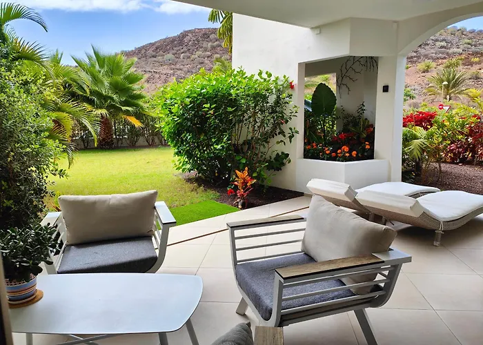 Garden Suites luxury apartment Palm-mar de 105 m² offre une vue sur le jardin et est à moins de 6 km du Patch. La résidence spacieuse dispose également d'une terrasse surplombant les montagnes.
